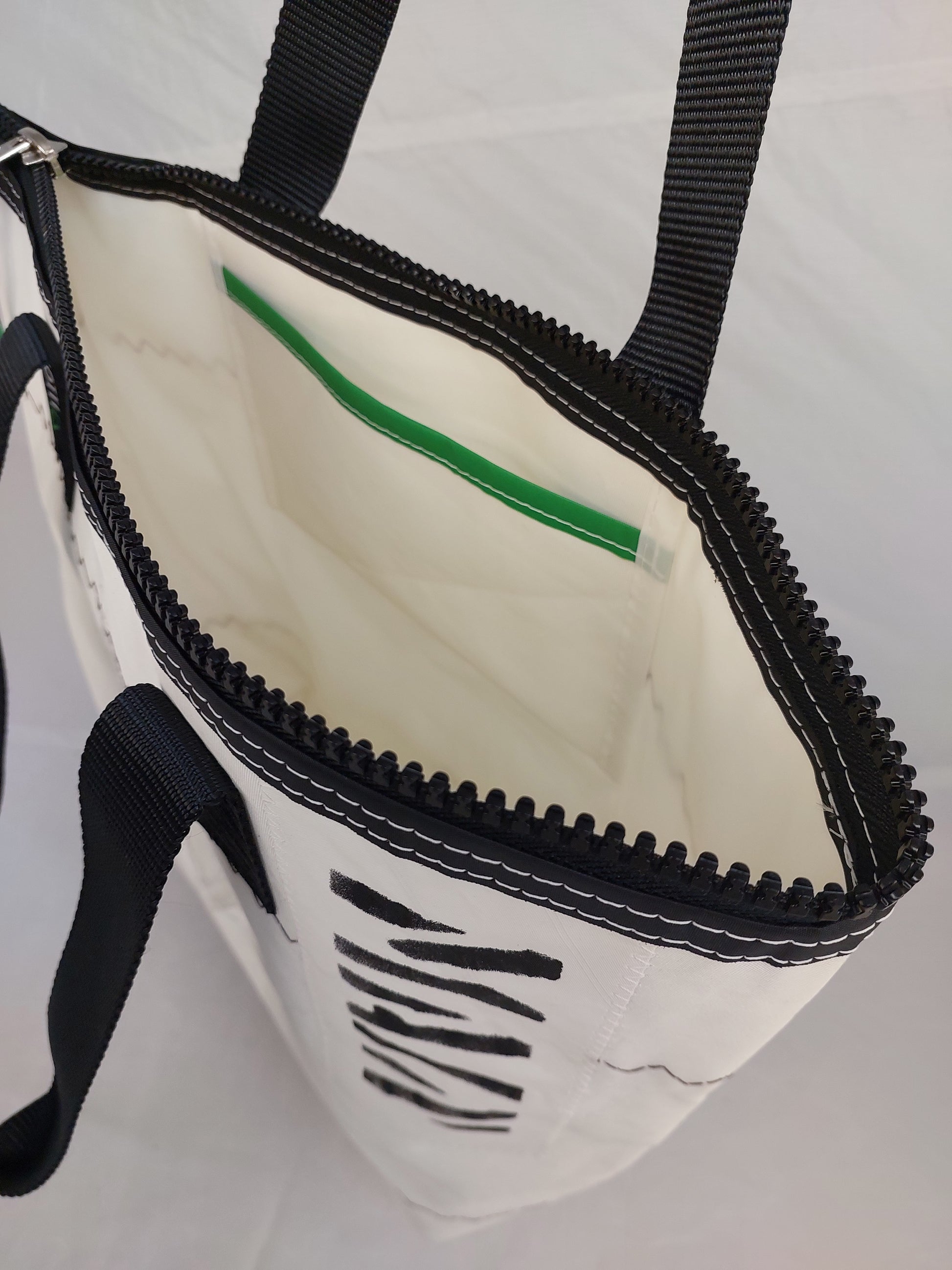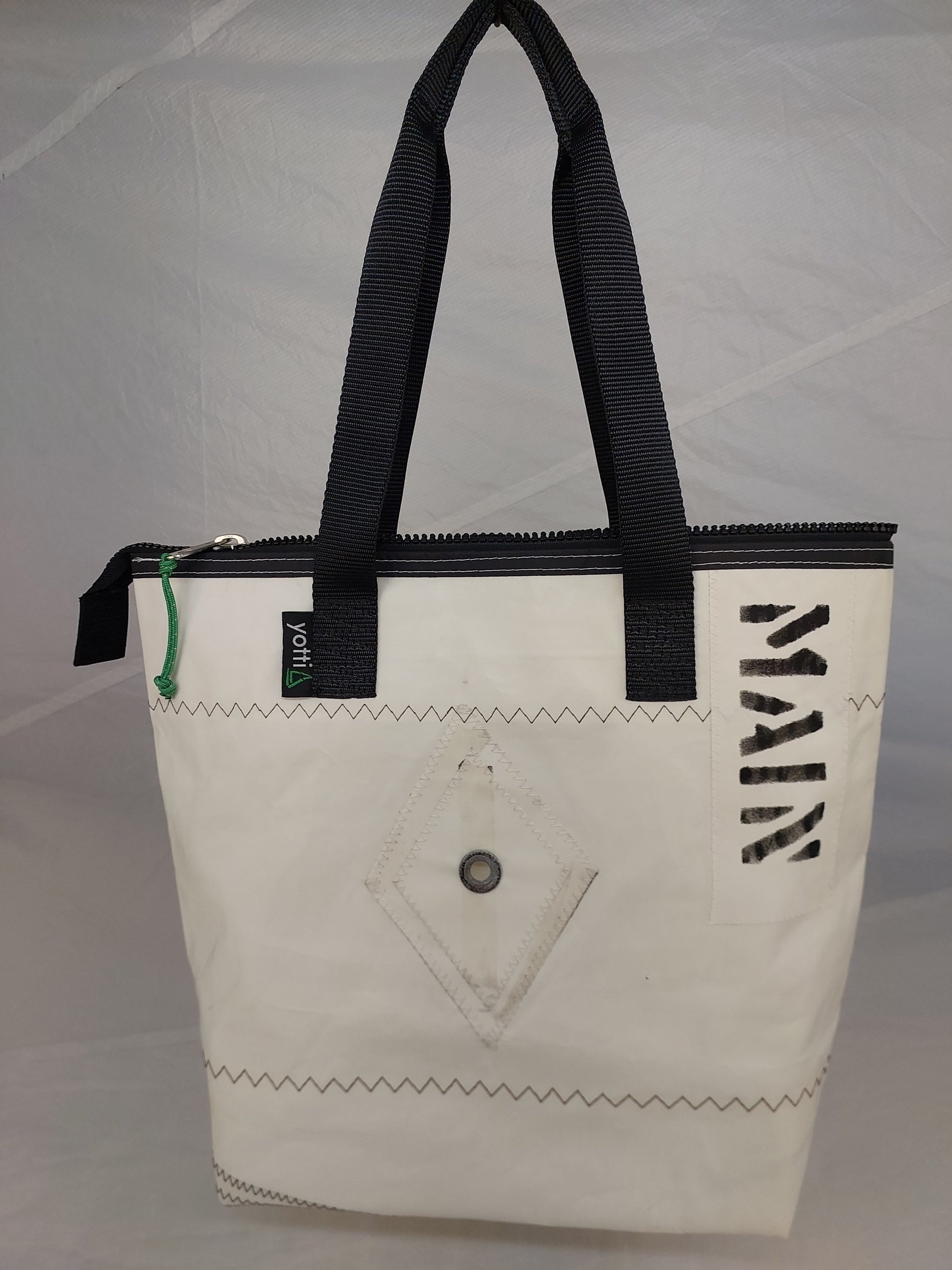 A white dacron sail with a white polyester lining Featuring sailmaker webbing handles, dacron tape trim and an internal slip pocket. We only use the best YKK marine zip.