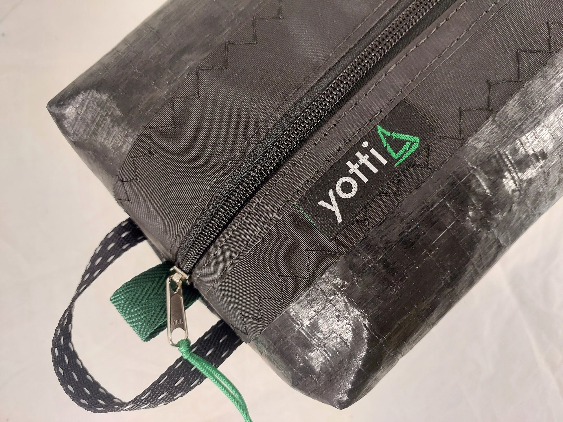 The Mini Kit Bag (MKB) is our most compact option, featuring a sleek black carbon fibre exterior with a vibrant lime green lining. Its durable construction makes it ideal for organizing essentials—whether as a wash bag, tool kit, first aid kit, travel underwear pouch, or a sailing crew bag for gloves and sun protection. Crafted from recycled race sails and reinforced with dacron sail tapes and premium YKK zippers, it combines sustainability with quality. Measuring 30cm L x 16cm W x 10cm H, it’s a versatile and thoughtful gift option suitable for any need.