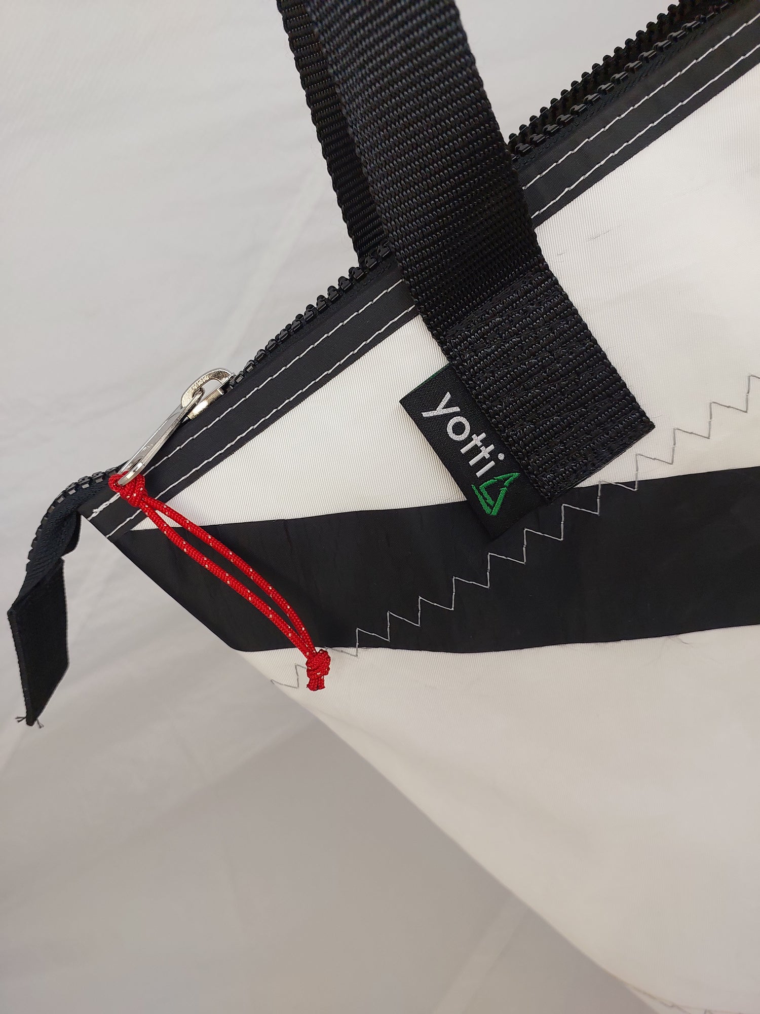 A white dacron sail with white polyester lining. Featuring sailmaker webbing handles, dacron tape trim and an internal slip pocket. We only use the best YKK marine zip.